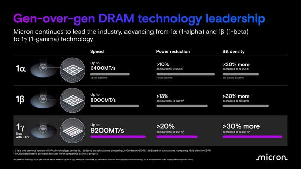 Micronが作っている製品――PC用の「DDR5」、スマホ用の「LPDDR5」、AI用の「HBM」、グラボ用の「GDDR7」――これらは全て、根本の技術(プロセス)は共通しています。
