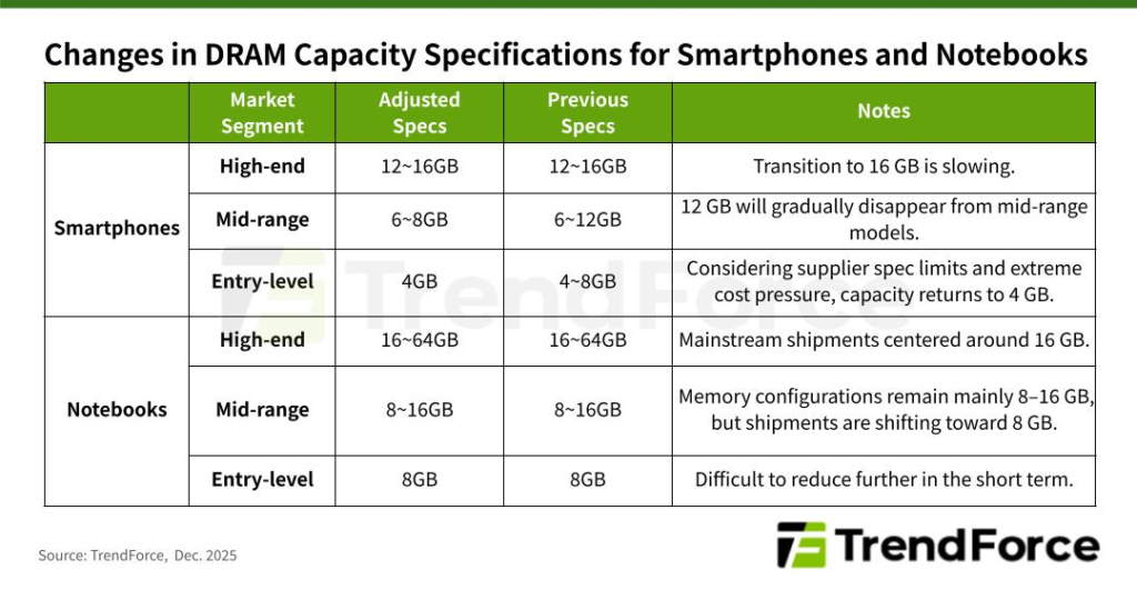 TrendForceは、ノートPCメーカーも製品ラインナップや仕入れ戦略を根本から見直すことになると警告しています。