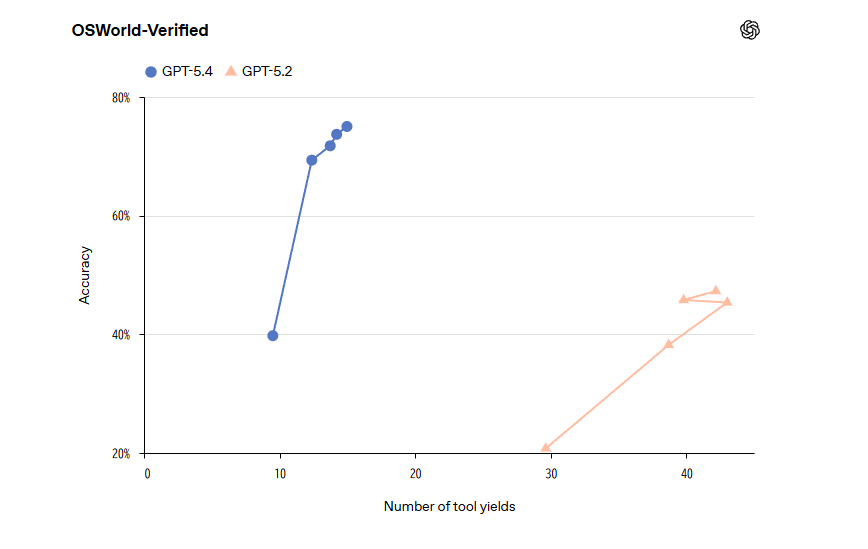 GPT‑5.4は、OpenAIの汎用モデルとして初めてネイティブなコンピュータ操作機能を搭載した。スクリーンショットを見てマウス・キーボードを操作し、ウェブサイトやソフトウェア上でタスクを自動実行できる。