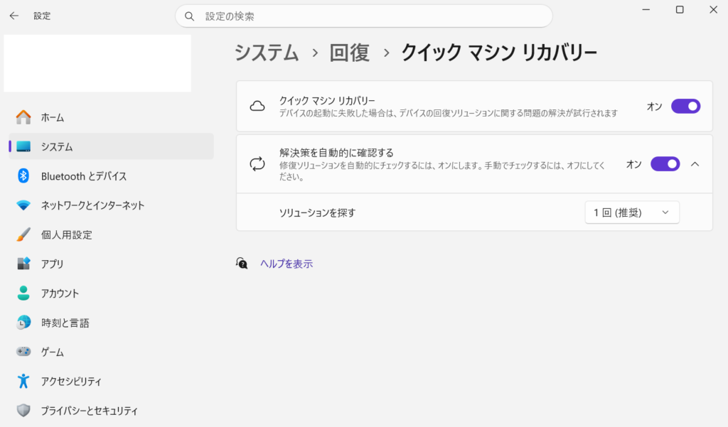 Quick Machine Recovery(QMR) は、起動トラブルが発生した際にシステムを修復・回復させる機能です。
