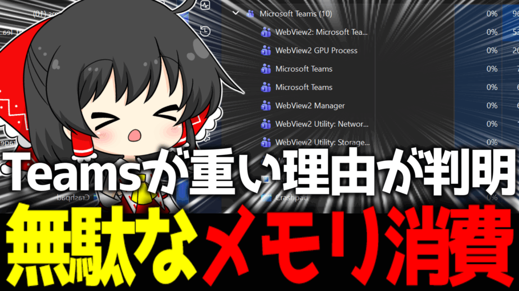 Microsoft公式が認めた:Teamsはメモリを食いつぶしている 全会社員と学生を悩ませてきた「Microsoft Teamsの重さ」について、ついにMicrosoft自身が公式に認めました。 「Teamsは、何もしていなくてもWindows上でメモリ(RAM)を食いつぶしている」 立ち... -